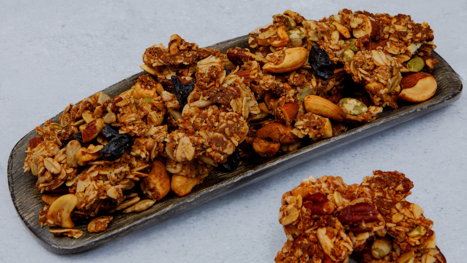 Prepared with Organic Rolled Oats, Organic Coconut Flakes, Roasted Nuts, Honey, Nut butter, and mixed seeds.
